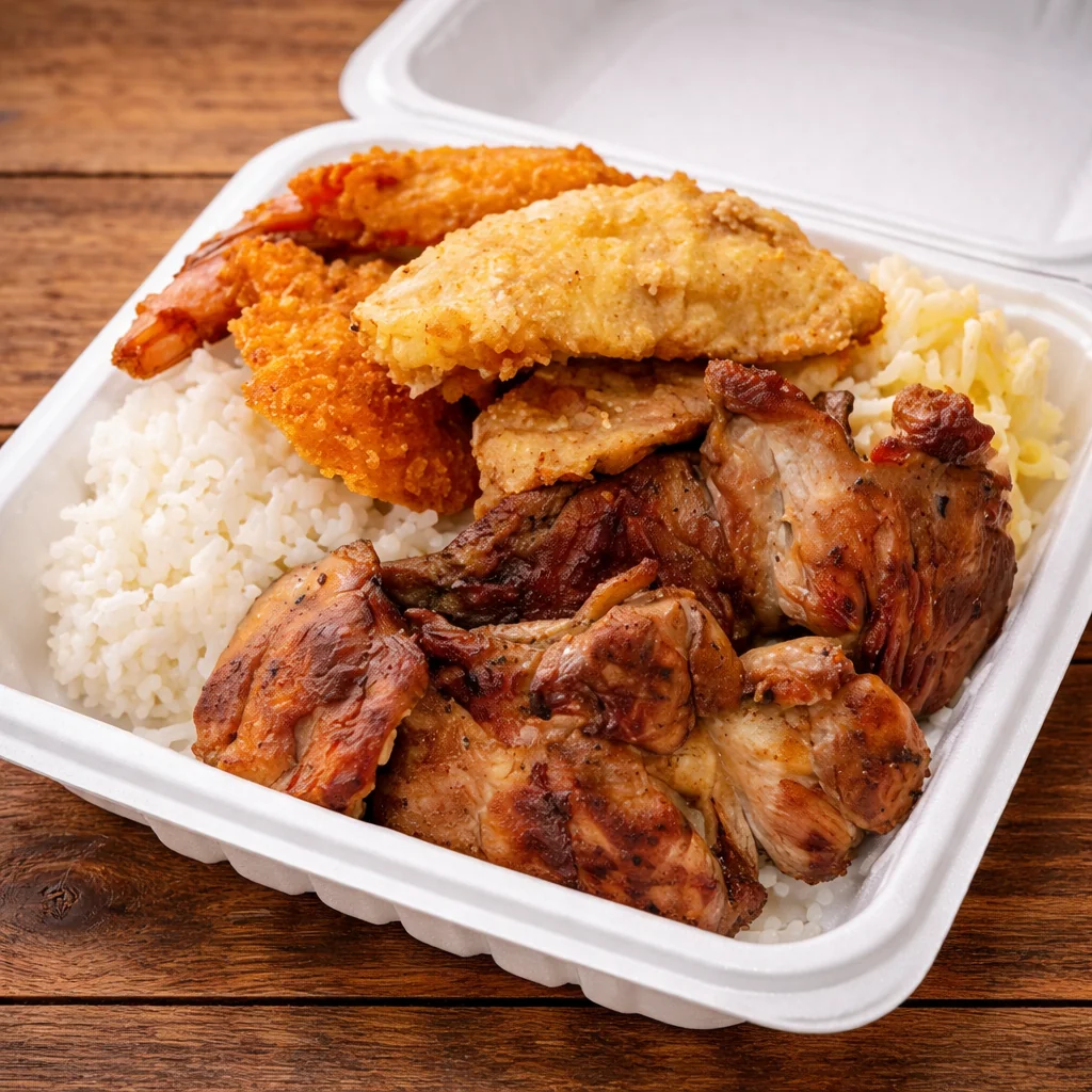 Great Hawaiian BBQ. Portion is pretty large, so if you have a small appetite then you can eat two meals out of a single order. If you want any sauce then make sure to ask before leaving with the order.